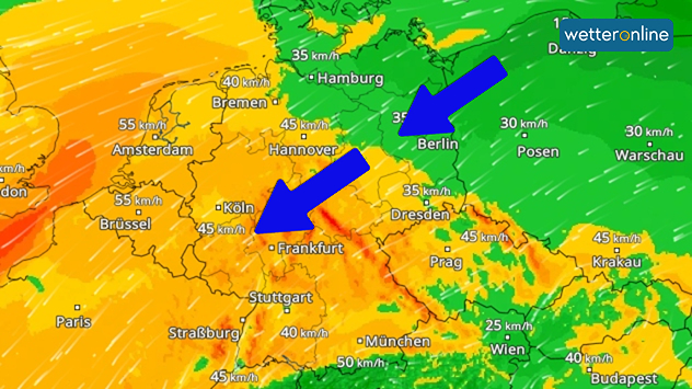 WindRadar für Mittwoch: An Heiligabend weht der Wind besonders kräftig und lenkt kalte Luft zu uns.Ein kräftiges Hoch bestimmt überwiegend an Weihnachten und darüber hinaus unser Wetter. Schnee ist damit nur wenig in Sicht. Dafür wird es mit einem östlichen Wind umso kälter.