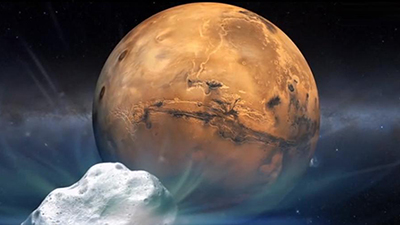 Nur knapp entgeht der Planet Mars am Sonntag einer kosmischen Kollision. Dann rast der Komet Siding Spring haarscharf an unserem Nachbarplaneten vorbei. Sein Staubschweif trifft den roten Planeten dagegen voll.