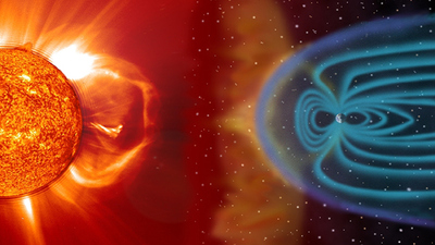 Denn von der Sonne geht neben elektromagnetischer Strahlung auch ein ständiger Strom elektrisch geladener Teilchen aus. Er weht mit mehr als eine Millionen Kilometer pro Stunde, kann aber bei Plasmaausbrüchen auf der Sonne zum Sturm mit über drei Millionen Kilometer pro Stunde anschwellen. Auf der Erde schützt uns das Magnetfeld vor dem Einschlag solcher Sonnenstürme, indem es die meisten Teilchen um die Erde herum lenkt. Nur in Polnähe gelangt ein Teil von ihnen bis in die Atmosphäre, wo sie spektakuläre Polarlichter hervorbringen können.
