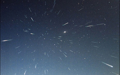 Ein intensiver Meteorschauer wie hier bei den Leoniden im November 2002 ist ein sehr eindrucksvolles Ereignis. Bildquelle: J. C. Casado & I. Graboleda, Spanien