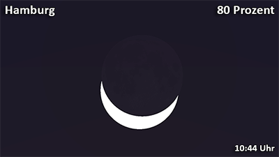 So wird die schmale Sichel der Sonne am Vormittag des 20. März über Hamburg aussehen: Knapp 80 Prozent der Sonnenscheibe verschwinden hinter dem Mond. Bildquelle: Sven Lüke