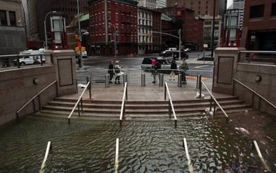Hurrikan "Sandy" schob eine gewaltige Sturmflut vor sich her. In New York wurden ganze Stadtviertel, Unterführungen, Tunnel und zum ersten Mal in der Geschichte der Stadt sogar einige U-Bahn-Schächte überschwemmt. Bildquelle: Alison Joyce/ AFP