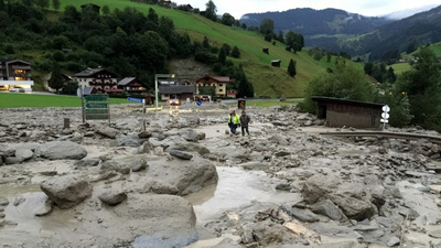 Das bei Touristen beliebte Großarltal im Salzburger Land war nach einer gewaltigen Schlammlawine vom 5. bis 7. August nur noch aus der Luft zu erreichen. Die Straße dorthin blockierten Geröllmassen, die mehrere Fahrzeuge mitgerissen hatten. Viele Touristen saßen fest, zwei Notfalllager wurden errichtet. Zwei Personen wurden aus der Mure gerettet. Dutzende Menschen mussten mit Hubschraubern evakuiert werden. In Österreich waren am insgesamt 14 wichtige Transitstrecken und Straßen wegen Murenabgängen nicht passierbar.