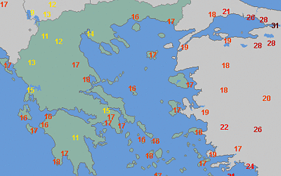 Das Sturmtief bildete sich in einem Gebiet großer Temperaturunterschiede. Während östlich von Istanbul am Mittwoch noch heiße 31 Grad gemessen wurden, waren es im griechischen Tripolis nur kühle 11 Grad. Bildquelle: WetterOnline Mitgliedschaft