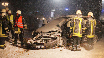 Nicht alle Unfälle verliefen glimpflich. In Mützenich unweit von Aachen musste der Fahrer dieses Autos mit schweren Verletzungen ins Krankenhaus gebracht werden. Das Fahrzeug hat nur noch Schrottwert. Bild: dpa
