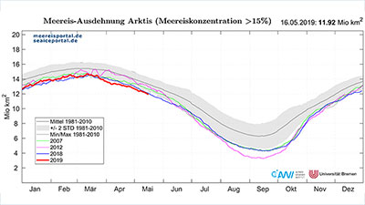 Auch in diesem Jahr bewegen wir uns wieder nahe den Rekordwerten für die Jahreszeit. Bild: Meereisportal.de