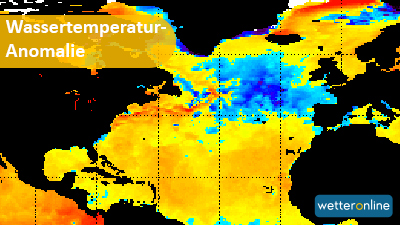 Der seit Monaten relativ kalte Nordatlantik heizt die Spekulationen über einen möglicherweise abgeschwächten Golfstrom an. Sollte das Meer in der Region auch in den Wintermonaten kalt bleiben, könnte dies die Wahrscheinlichkeit auf Winterwetter in Europa erhöhen. Sicher ist das aber nicht. Quelle: NOAA