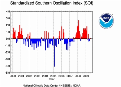 Verlauf des Southern Oscillation Index seit dem Jahr 2000