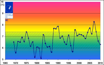 Obgleich ähnliche meteorologische Bedingungen herrschten, wurden die niedrigen Januar-Temperaturen der Nordsee in den kalten Wintern der Jahre 1979 (5,2 Grad), 1982 (5,1 Grad), 1987 (5,7 Grad) und 1997 (5,6 Grad) jedoch nicht erreicht und die aktuellen Werte halten sich noch in der natürlichen Schwankungsbreite von plus/minus 0,7 Grad. Nach Schlussfolgerungen des Bundesamtes liegen die aktuellen Durchschnittstemperaturen für die gesamte Nordsee daher auch weiterhin in einem langfristigen Trend zu höheren Wassertemperaturen.