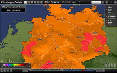 Auf der Klimafolgenkonferenz in Berlin ist am Montagmittag ein neues Webportal für Klimafolgen vorgestellt worden. KlimafolgenOnline.com wurde von WetterOnline in Kooperation mit dem Potsdam-Institut für Klimafolgenforschung (PIK) entwickelt, um die Folgen des Klimawandels darzustellen. Neben zahlreichen Klimaparametern wie Temperatur, Niederschlag oder Sonnenstrahlung geht es dabei insbesondere um die Auswirkung auf Land-, Forst- und Energiewirtschaft. Dargestellt werden Beobachtungsdaten von 1901 bis 2010 und Vorhersagen bis ins Jahr 2100.