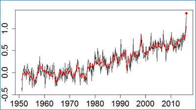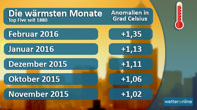 Als dritter Monat in Folge hat auch der Februar 2016 mit großem Abstand den globalen Monats-Temperaturrekord gebrochen. Neben den CO2-Emissionen hat dies aber auch eine ganze Reihe natürlicher Ursachen.