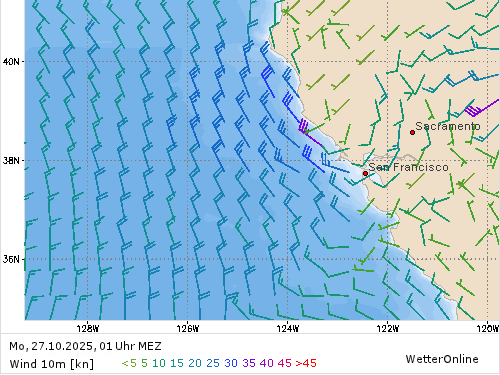Mittwoch Abend / Nacht: Wind aus Richtung 315 Grad mit Windstärke 5-6 Beaufort