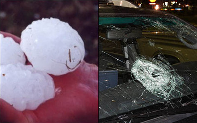 Bildquelle: Stormgasm.com/Eric Nguyen - Große Hagelkörner werden zu lebensgefährlichen Geschossen, solche Hagelsteine können sogar die Windschutzscheiben von Fahrzeugen durchschlagen. Ein Hagelkorn mit 3 Zentimeter Durchmesser hat am Boden bereits eine Aufprallgeschwindigkeit von über 70 Stundenkilometer, die größten Eisklumpen schlagen sogar mit über 150 Stundenkilometer auf.