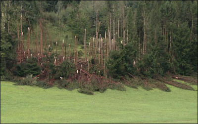 Walter Stieglmair - Wie die sprichwörtlichen "Streichhölzer" knickten diese Bäume um. Die wie von einer Riesenfaust gefällten Stämme zeigen höchst eindrucksvoll, wie kleinräumig und gleichsam wuchtig sich extreme Fallböen auswirken können.