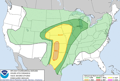 In den folgenden Karten ist der "Convective Outlook" für den aktuellen Tag sowie für die beiden folgenden Tage dargestellt (bitte auf die Voransichten klicken). Allgemeine Infos zu den Convective Outlooks haben wir hier für Sie zusammengestellt.