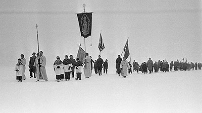 Die Wurzeln der Bodensee-Prozession von Hagnau nach Münsterlingen während einer "Seegefrörni" reichen bis ins 15. Jahrhundert zurück. Bild: dpa