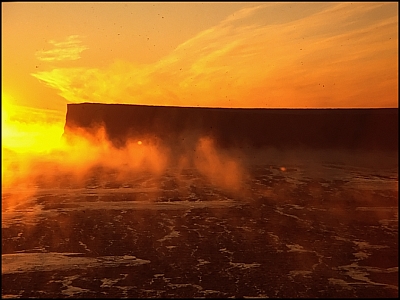 Die Nebelschwaden entstehen, wenn sich die Luft über dem noch nicht ganz zugefrorenen Ozean unter -15° abkühlt.