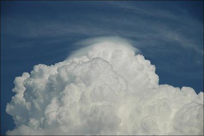 WetterOnline - Überschreitet die Wolke eine Höhe von etwa 5 Kilometern bildet sich an ihrer Spitze mitunter eine kleine Kappe, eine so genannte Pileuswolke.