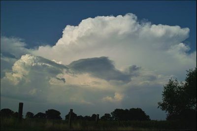 Wird der weitere Aufstieg dieses "Ballons" nicht durch wärmere Luftschichten gestoppt, schießt er immer rasanter weiter in die Höhe und bildet bald einen kilometerhohen Wolkenturm, in welchem der Aufwind mit über 150 Stundenkilometern himmelwärts schießt. Während die Temperatur an seiner Basis noch über dem Gefrierpunkt liegt, wird die Wolke mit zunehmender Höhe rasch kälter und in ihrem Gipfelbereich herrscht oft strenger Frost unter minus 50 Grad, - Werte, bei denen die Wolke nur noch aus durcheinander wirbelnden Eiskristallen besteht.