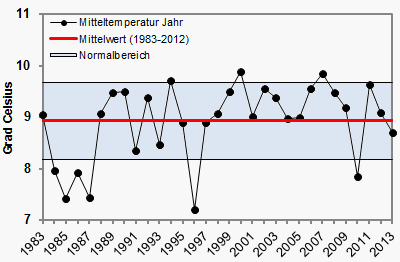 Zwar wich die Durchschnittstemperatur nicht groß vom langjährigen Klimamittel ab, 2013 gehörte aber dennoch zu den kühlsten Jahren der letzten Jahrzehnte.