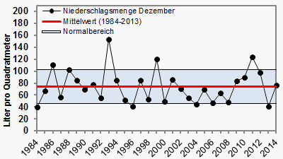 Mit 77 Liter pro Quadratmeter lag die Niederschlagsbilanz landesweit nur etwa drei Liter über dem Durchschnitt der Jahre 1984 bis 2013.