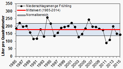 Der Frühling 2015 war zwar deutlich feuchter als die beiden ausgesprochen trockenen Frühjahre 2011 und 2012, aber trockener als in den beiden vergangenen Jahren.