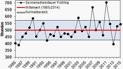 Besonders der mal wieder ausgesprochen sonnige April katapultierte die Sonnenscheinbilanz des gesamten Frühlings deutlich ins Plus. Mit rund 545 Stunden schien die Sonne um 20 Prozent mehr als im Durchschnitt. Die Unterschiede erreichten dabei bei weitem nicht die Spannweite wie beim Niederschlag: Aber immerhin konnten sich die Menschen rund um Rügen, in Rheinhessen und im Breisgau mit über 620 Stunden über ein Drittel mehr Sonne freuen als am Alpenrand.