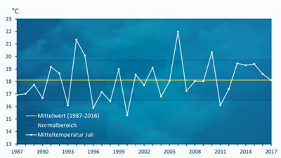 Trotz einer durchschnittlichen Temperatur war der Juli 2017 der kühlste seiner Klasse seit fünf Jahren.