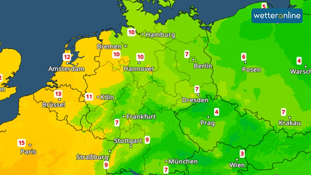Hauch von VorfrühlingIm Westen vielfach über 10 Grad