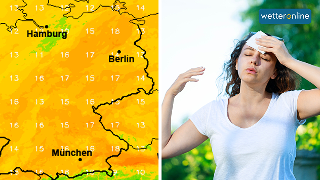 Mittwoch hohe TaupunkteOsten und Süden: Die Luft wird schwüler