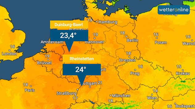 | Duisburg-Baerl (Nordrhein-Westfalen) | 23,4 Grad |