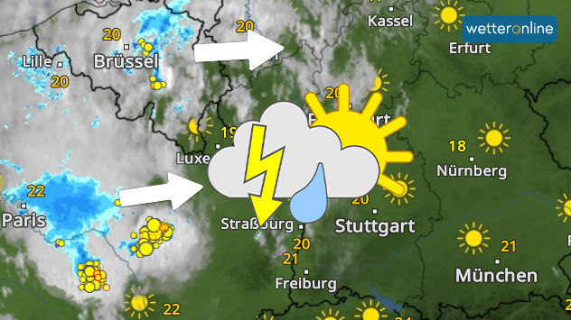 Gewitterreste unterwegsAus Frankreich nahen Blitz und Donner