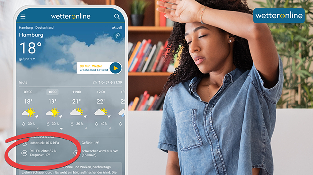 Hohe Taupunkte am SonntagIm Nordwesten unangenehm schwül