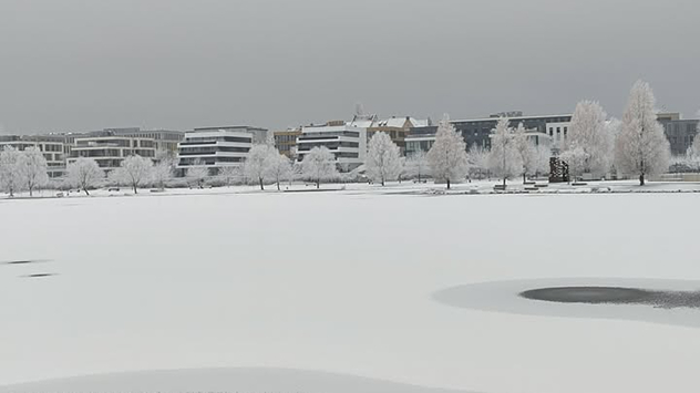 In Brühl bei Köln liegt am Montagmorgen feiner Industrieschnee. - © Timo W.In einigen Regionen Nordrhein-Westfalens ist es weiß geworden. Das ist bei dem anhaltenden Hochdruckeinfluss allerdings ungewöhnlich.