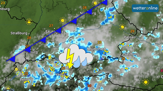 Kaltfront zieht durchSüdosthälfte: Schauer und Gewitter