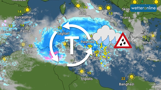 Viel Regen drohtTief wirbelt im Mittelmeer