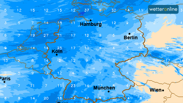Von Nordwesten her nassRegenfront von Tief ZILAN zieht auf