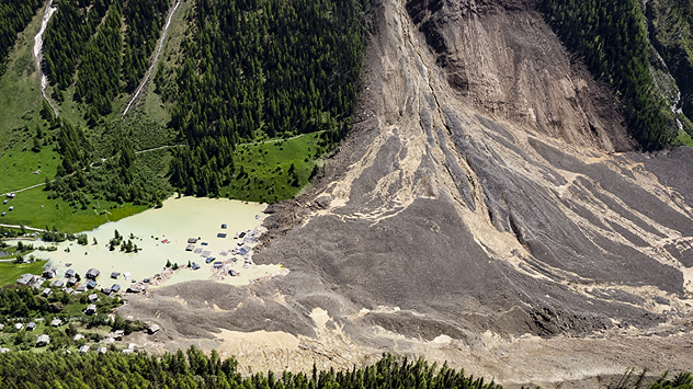 Riesiger GletscherabbruchSchweizer Bergdorf unter Schutt begraben