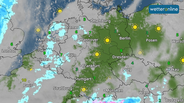 Sonne, Wolken, NebelWetterdreiteilung zur Wochenmitte