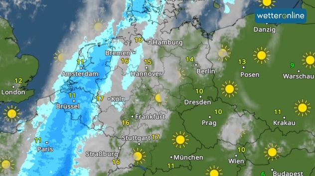 Sonne, Wolken, RegenWetterdreiteilung am Montag