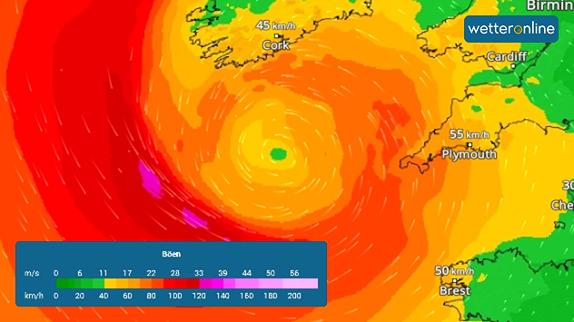 Sturmwirbel bei IrlandSchneckenförmige Tiefdruckspirale