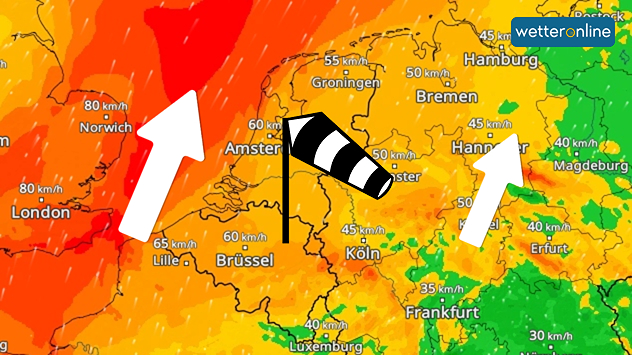 Tief SIGRIDWarmluft kommt mit stürmischem Wind