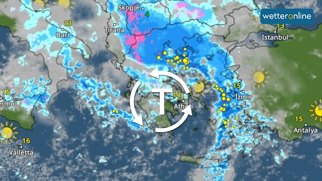 Massiver Starkregen drohtUnwettertief trifft Griechenland