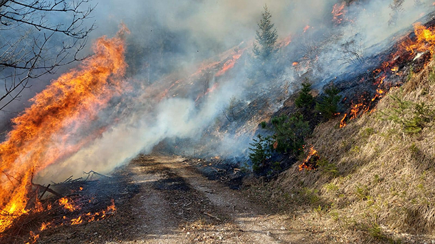 Wind erschwert LöschenWaldbrand in Österreich