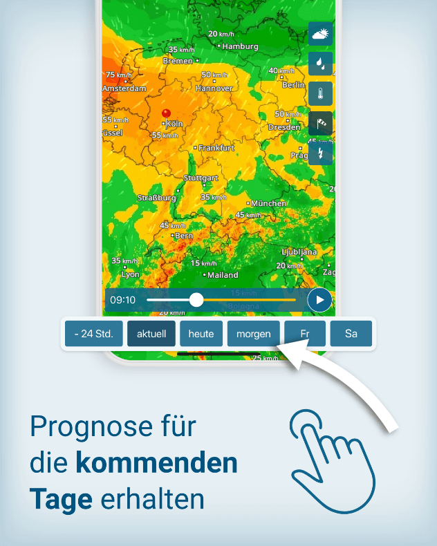So wechselst du in der App vom WetterRadar ins WindRadar: