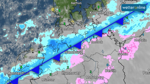 Regen und etwas SchneeWetterfront ab dem Nachmittag