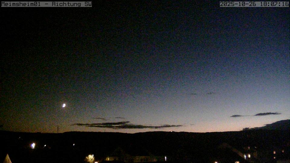 | Mühlacker (245m) So, 26.10. 18:30 Uhr | 6.4° | leicht bewölkt | 0.0 l/m2 in 30 Min | W 2 Böen 20 km/h |